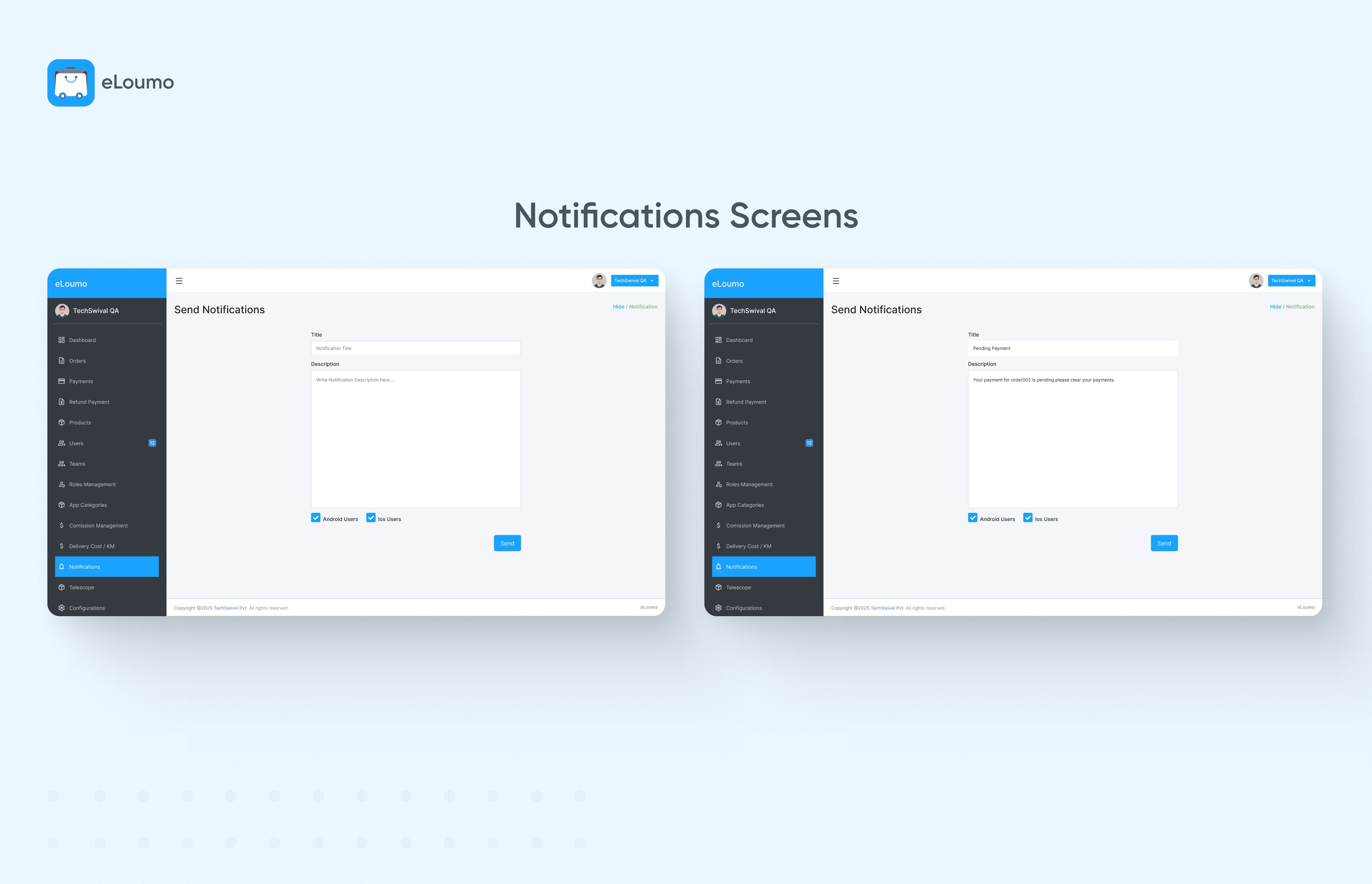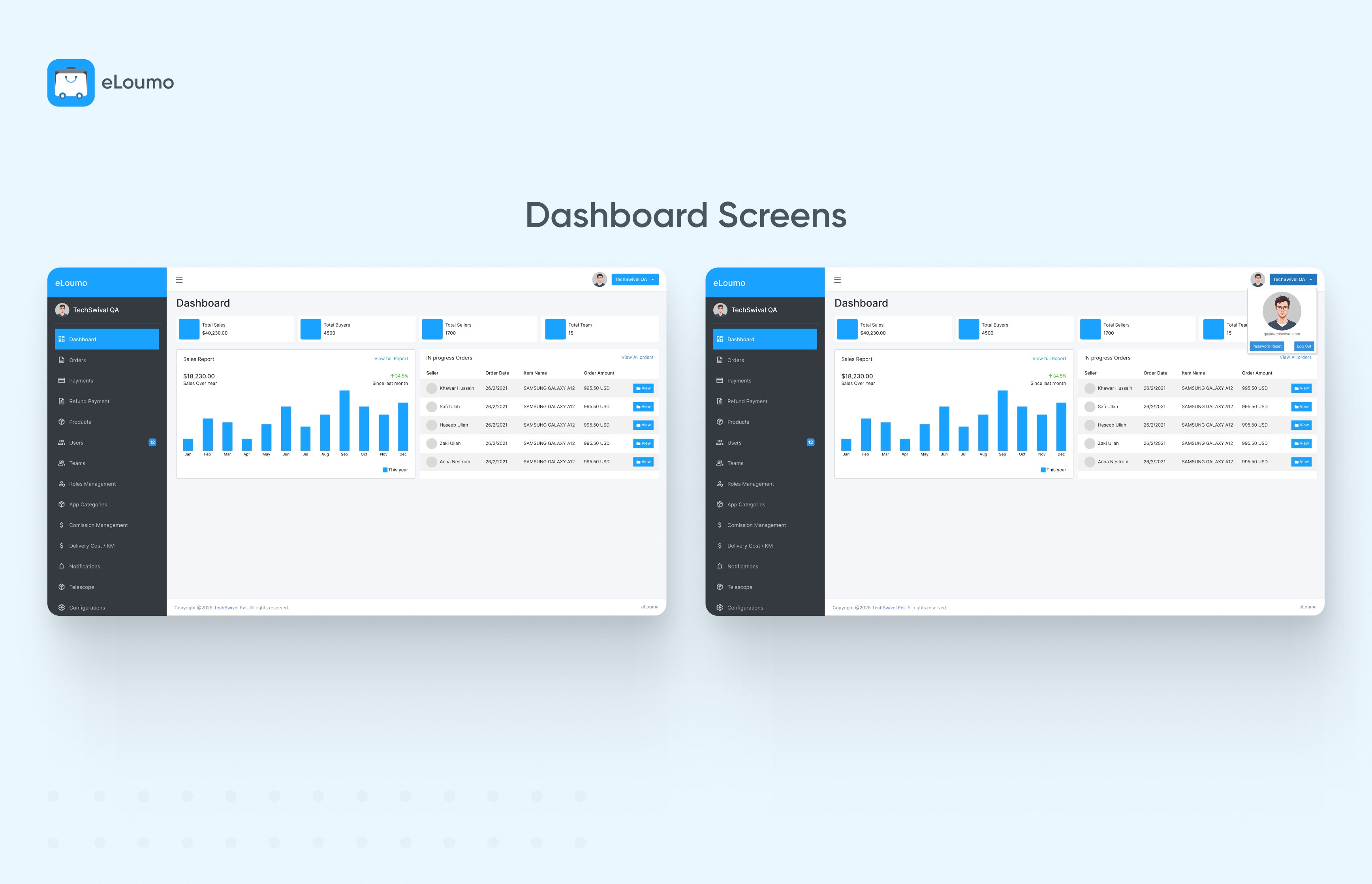 eLoume is a smart and powerful admin panel built to help businesses manage everything in one place. From tracking orders and payments to managing users, products, teams, and delivery settings eLoume makes it all easy and organized.