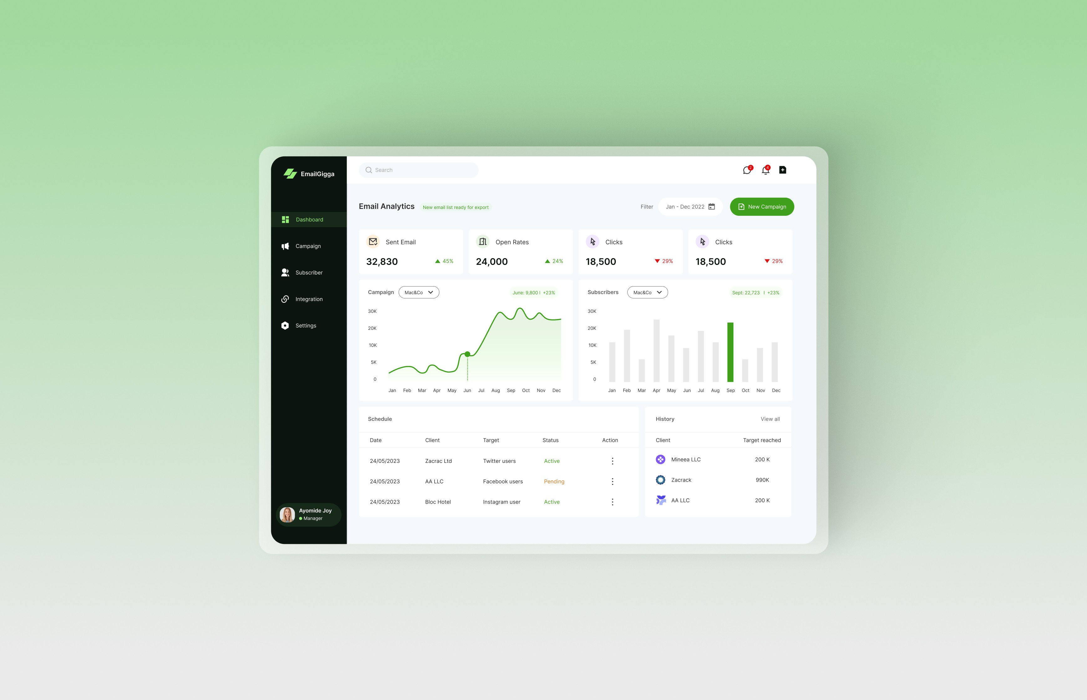 Email Gigga is a smart and easy-to-use email marketing platform designed to help businesses connect with their audience. It allows users to create, schedule, and send professional emails, newsletters, and promotions — all in just a few clicks.